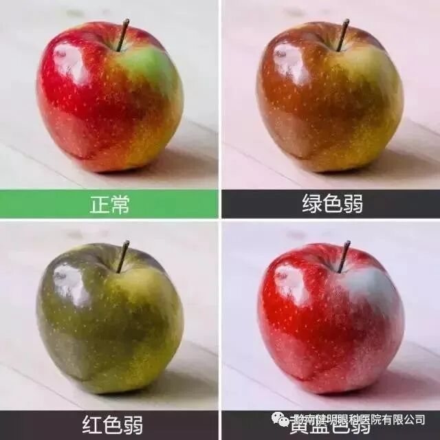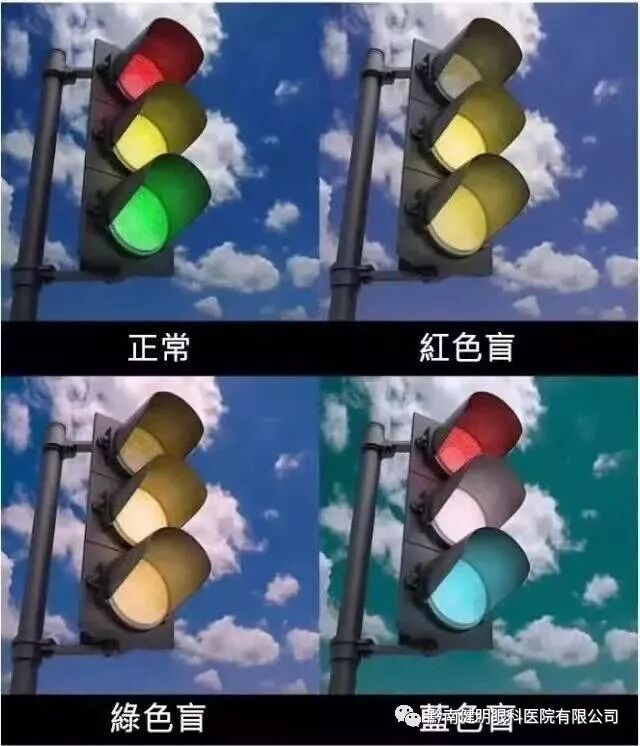 红色盲患者容易将黑色与不同深浅的红色混淆;深棕色与深绿色、暗橘色和深红色混淆;某些蓝色与红色、紫色和深粉色混淆;中绿色与某些橘色混淆。